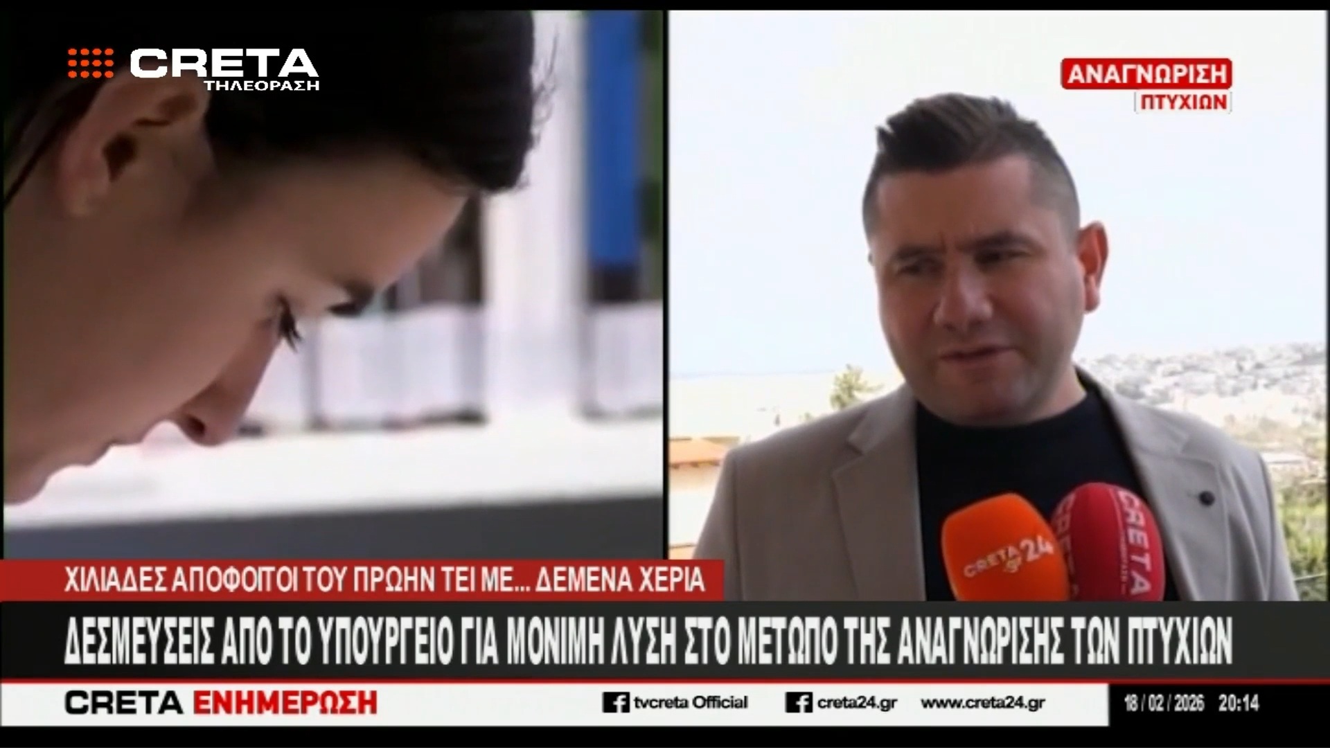Ρεπορτάζ στο TV CRETA για την αντιστοίχιση πτυχίων των Αποφοίτων Α.Ε.Ι. Τ.Τ. (Τ.Ε.Ι.)